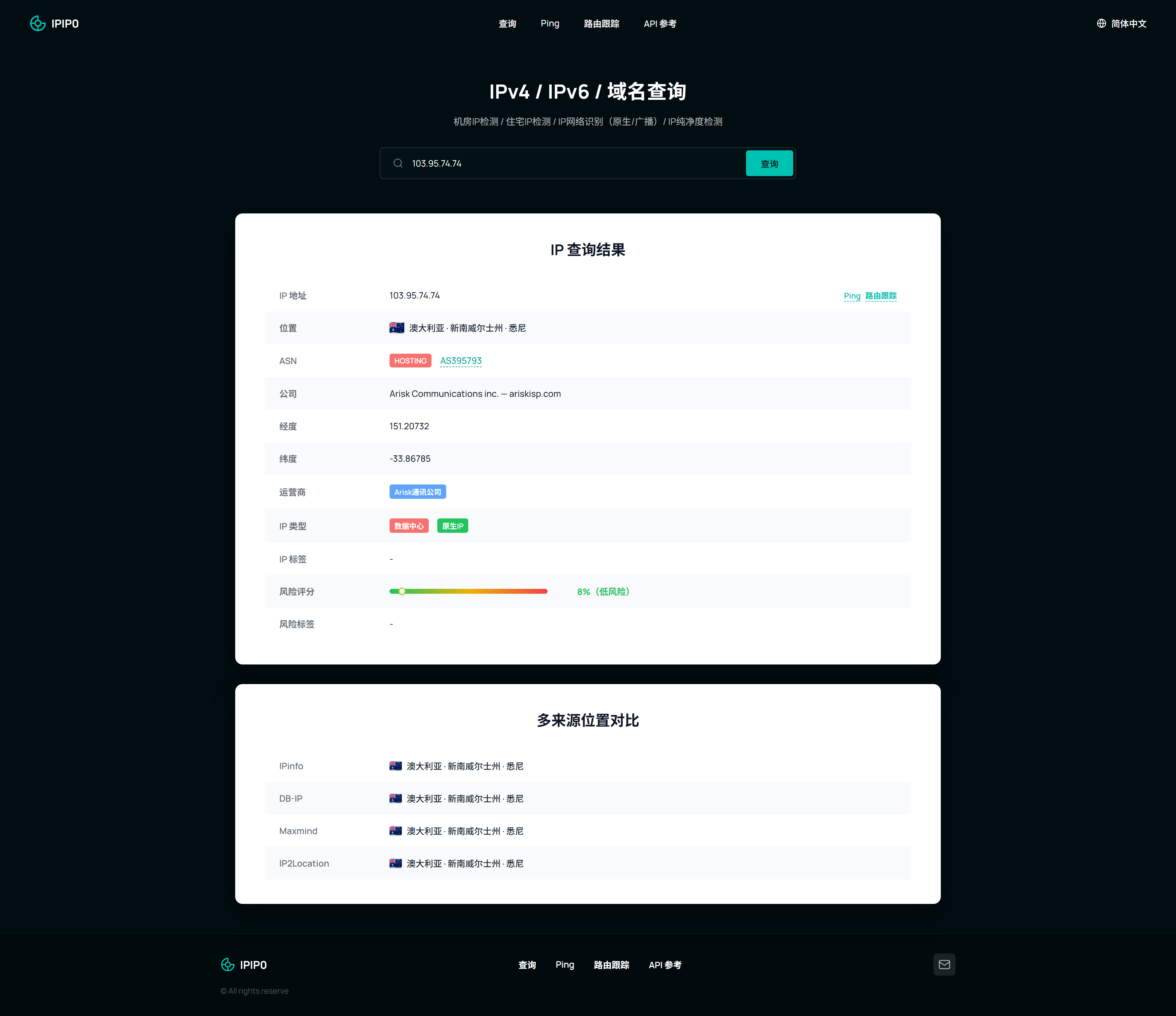 Fluorineovo 2 23 小时 #1 目前聚合了多家 ip 源数据,加上了我们自有的风险检测扫描。至少替代 ipip 的基础查询足够了。 image3840×3318 328 KB 2 个回复 heart +1 clap 20 收藏 450 浏览量 23 赞 4 链接 22 用户 6 3 2